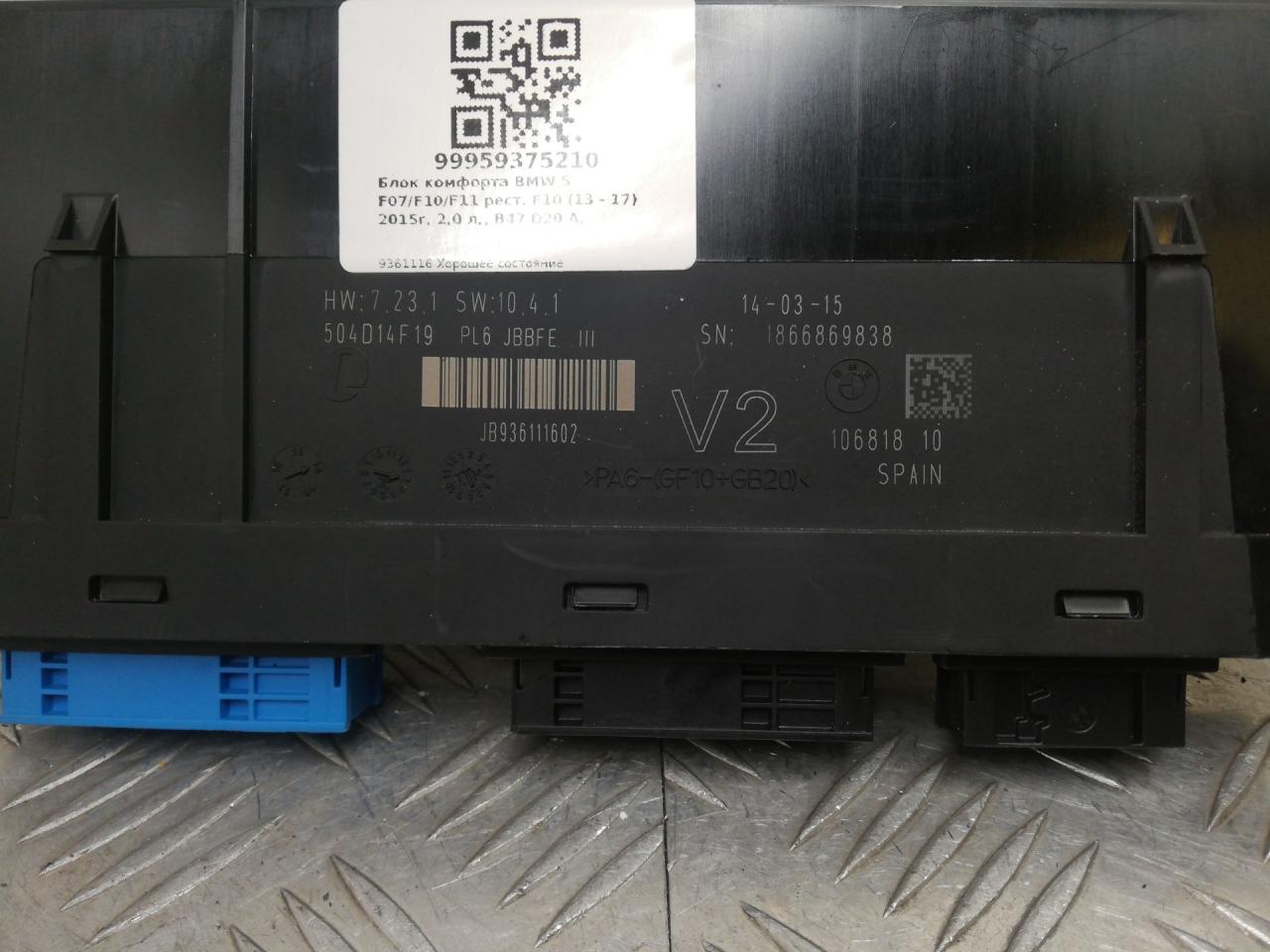 ![блок комфорта BMW 5 серия F10/F11 [рестайлинг] F10 2016, 2.0 л., B47 D20 A, дизель, АКПП, mineralgrau metallic (b39), седан, задний привод, правый руль, 61356992418, 9361116 - фото №3](https://st.carrobiz.com/gallery/version/491/car-part/2537237/9860326/preview.jpg)