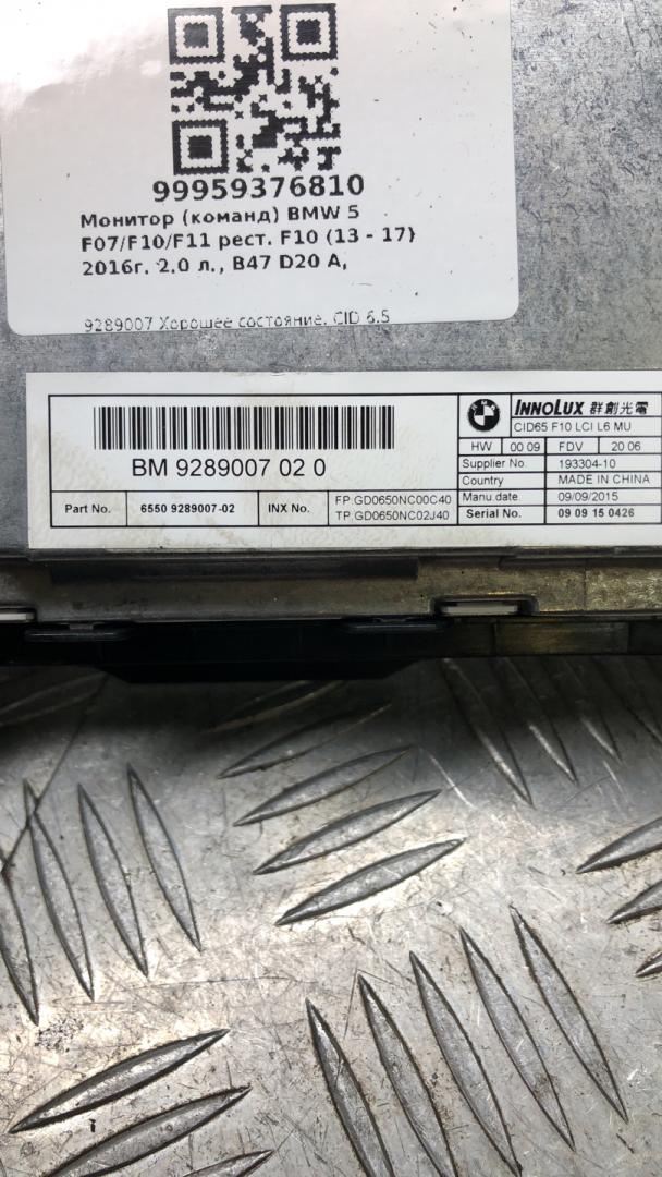 ![монитор мультимедиа BMW 5 серия F10/F11 [рестайлинг] F10 2016, 2.0 л., B47 D20 A, дизель, АКПП, spacegrau metallic (a52), седан, задний привод, правый руль, 65509289007, 9289007 - фото №1](https://st.carrobiz.com/gallery/version/491/car-part/2661987/10611245/base.jpg)