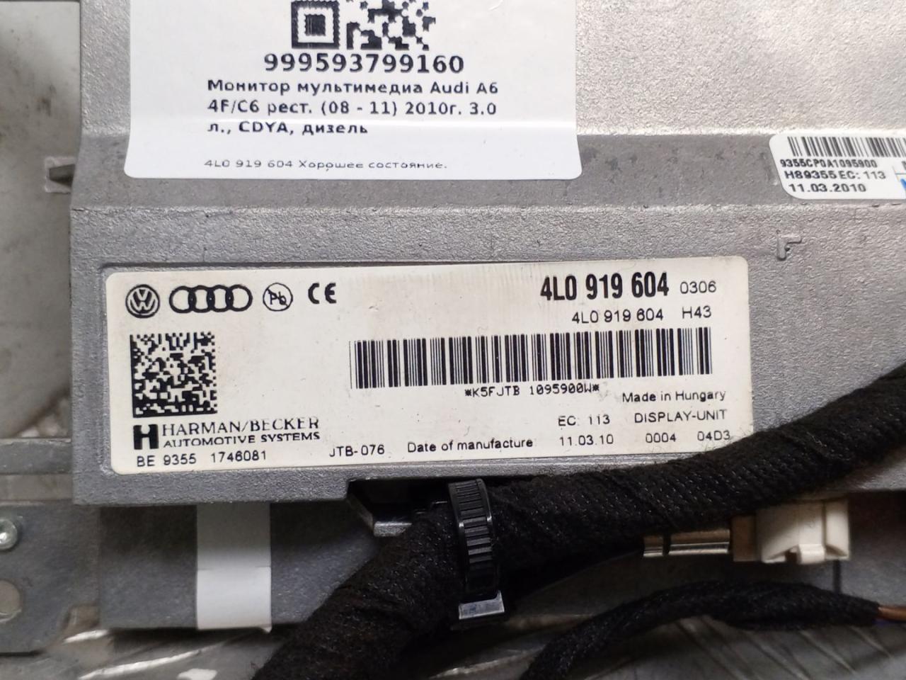 ![монитор мультимедиа Audi A6 4F/C6 [рестайлинг] 2010, 3.0 л., CDYA, дизель, 7x7x, седан, полный привод, правый руль, 4L0919604 - фото №5](https://st.carrobiz.com/gallery/version/491/car-part/6132545/28293851/preview.jpg)