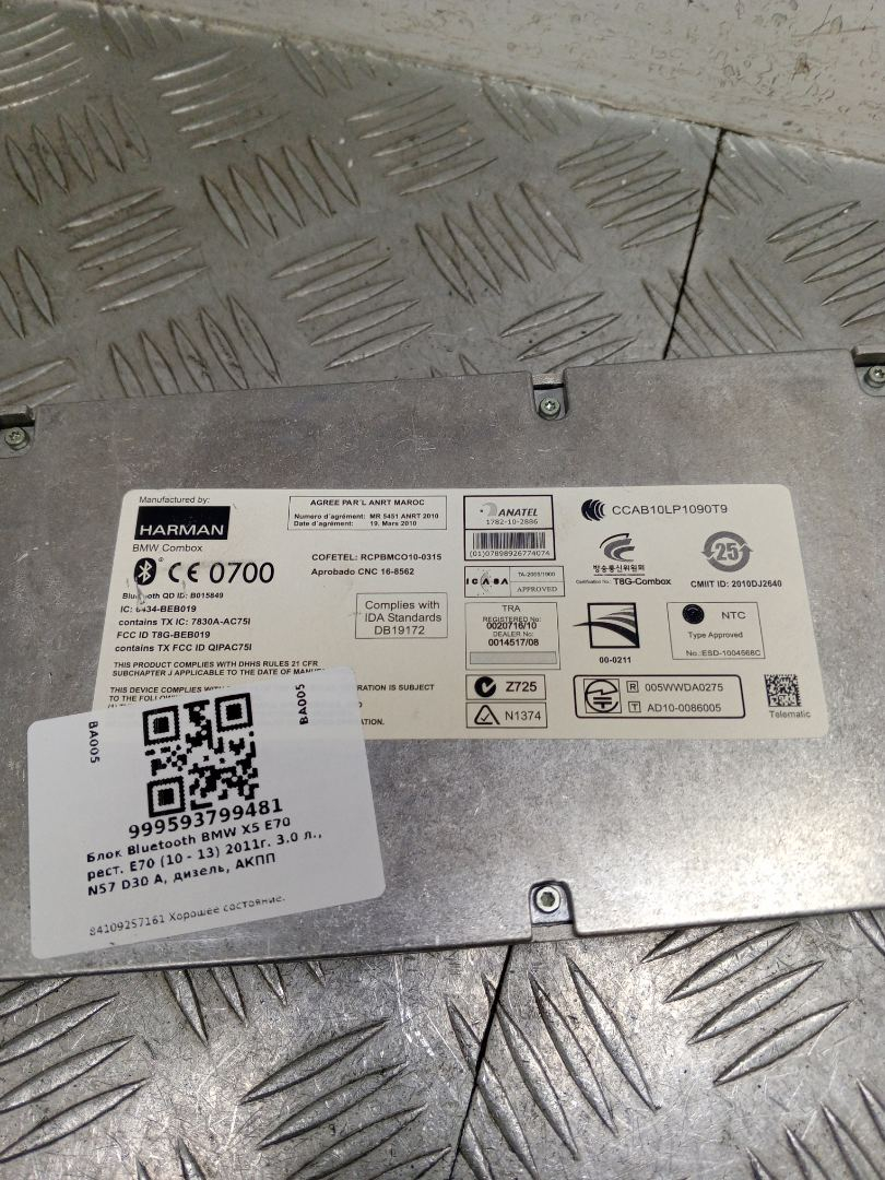 ![блок Bluetooth BMW X5 E70 [рестайлинг] E70 2012, 3.0 л., N57 D30 A, дизель, АКПП, black sapphire metallic (475), внедорожник 5 дв., полный привод, правый руль, 84109257161 - фото №3](https://st.carrobiz.com/gallery/version/491/car-part/6203495/28506712/preview.jpg)
