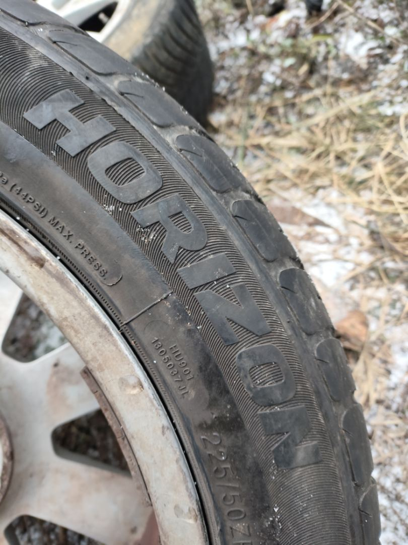 Цена за комплект. Резина вся разная, боковой порез, износ.