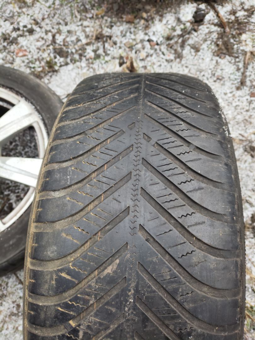 Комплект колес R17x7.5 5x112 (Goodyear VECTOR 4SEASONS 225/50) R17, ширина обода: 7.5, PCD 5x112 мм, ET 45 мм. Шины: легковые, всесезонные, 2021, остаточная высота: 5мм. Audi A6 C6 рест. 2010 3.0 л., CDYA, дизель 7X7X, седан, полный привод, правый руль